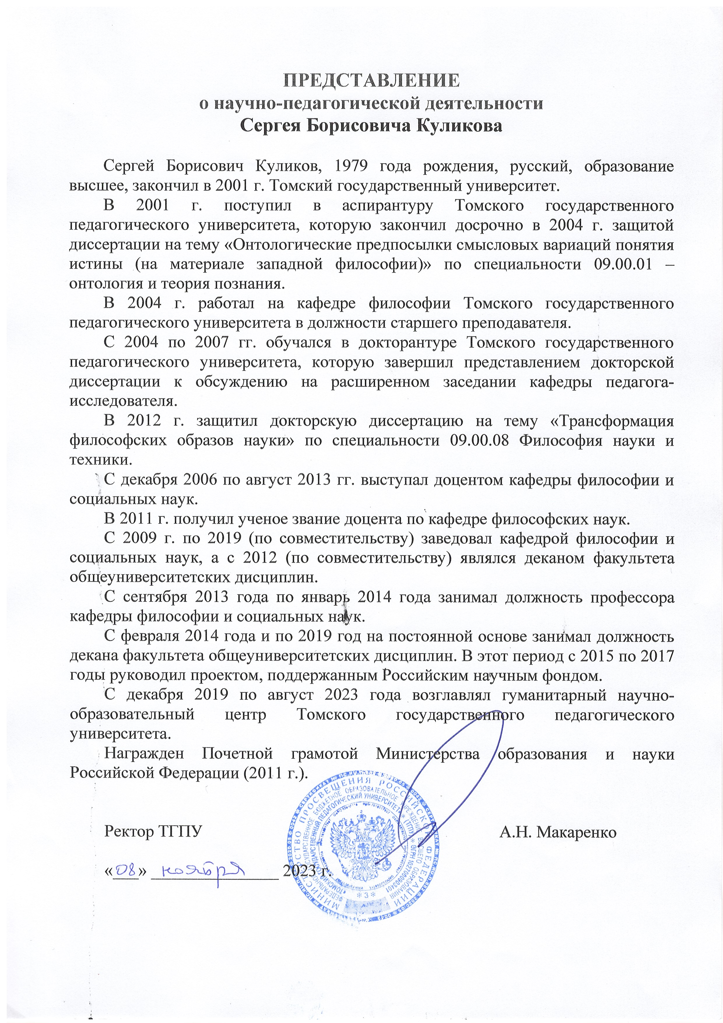 Кем выдвинут для участия в выборах: ученым советом ИФП 08.11.2023 г. (